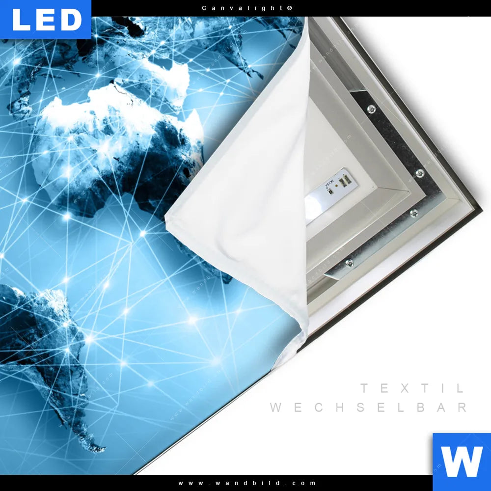 LED-Textilrahmen-Bild mit austauschbarem Karten Textil-Druck (Wechselbild)