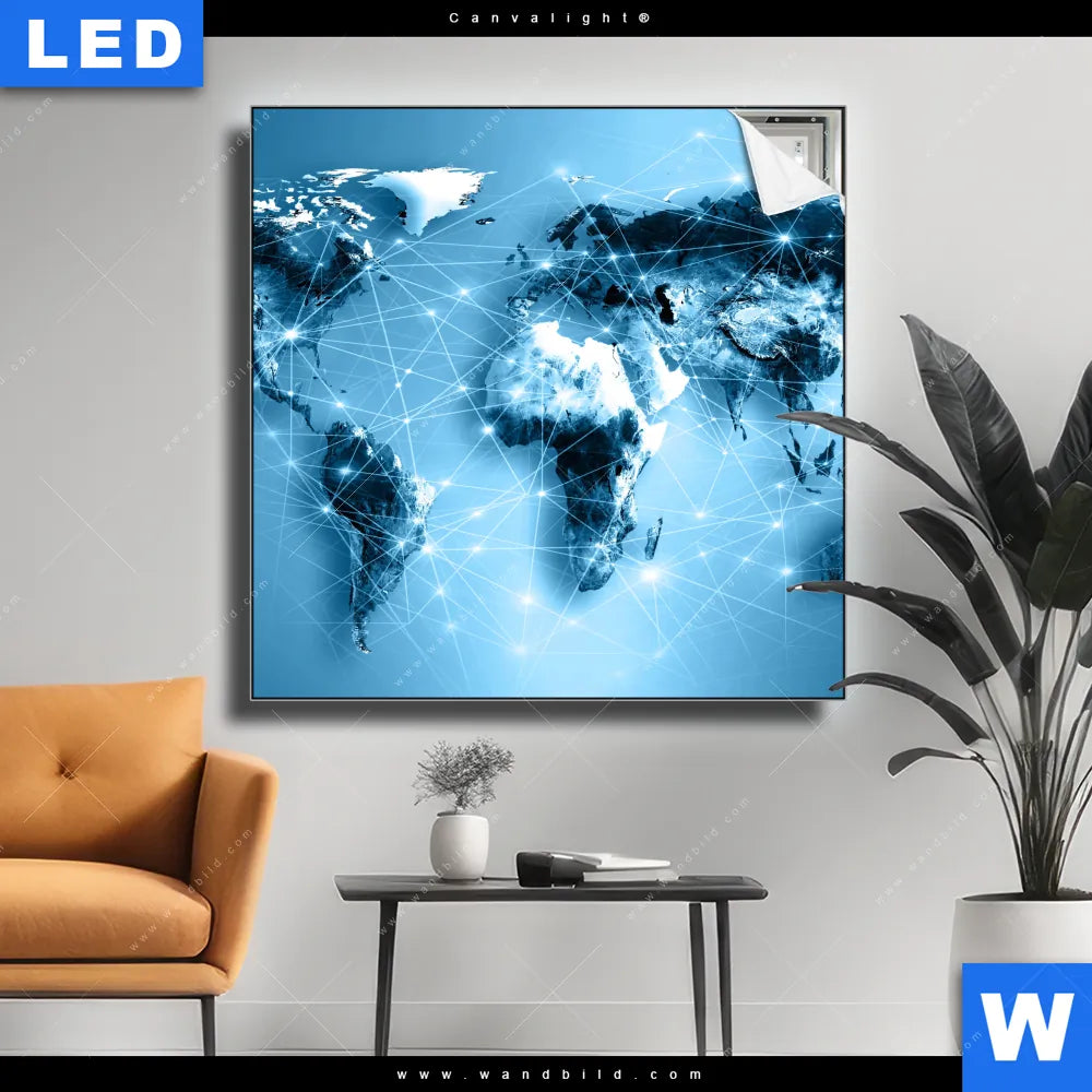 Canvalight® Leuchtbild | Weltkarte Kommunikation | Quadrat
