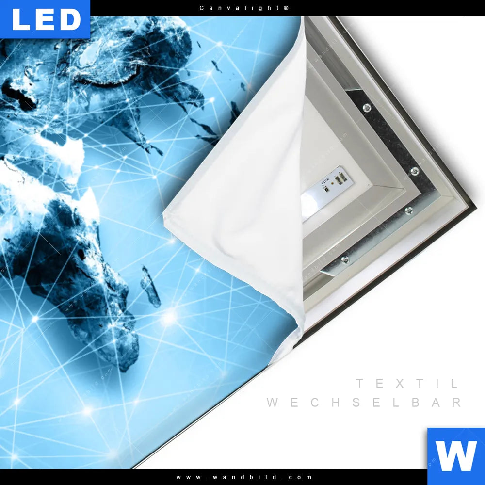 Canvalight® TEX Leuchtbild | Weltkarte Kommunikation | Querformat