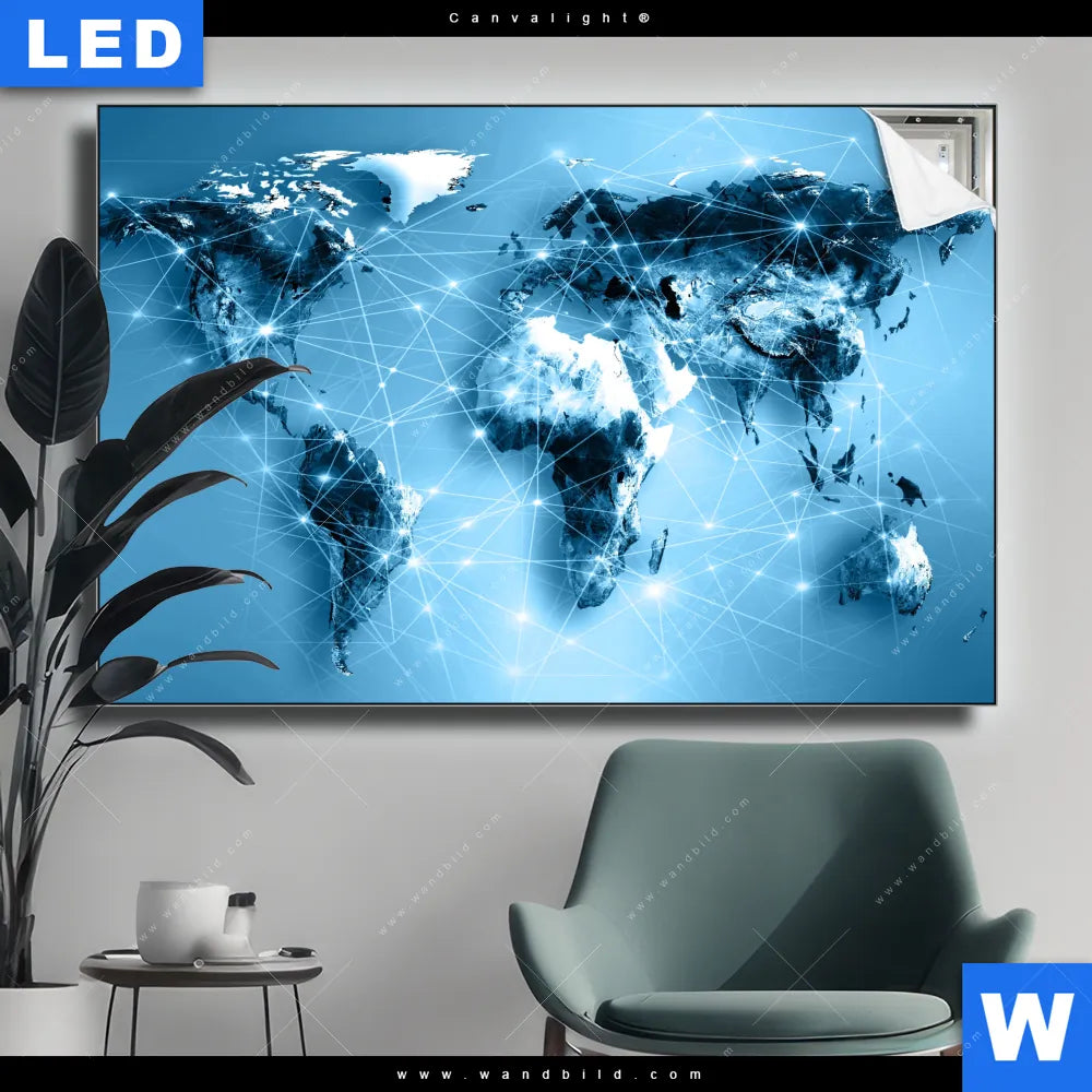 Canvalight® Leuchtbild | Weltkarte Kommunikation | Querformat