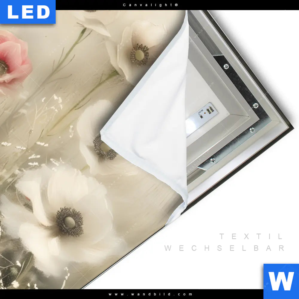 LED-Textilrahmen-Bild mit austauschbarem Blumen - Botanik, Landschaften Textil-Druck (Wechselbild)
