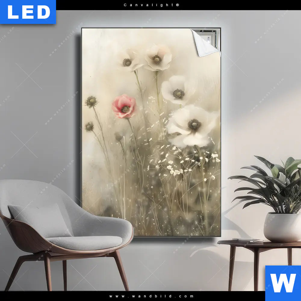 Canvalight® TEX Leuchtbild | Zarte Wildblumen in Pastelltönen | Hochformat