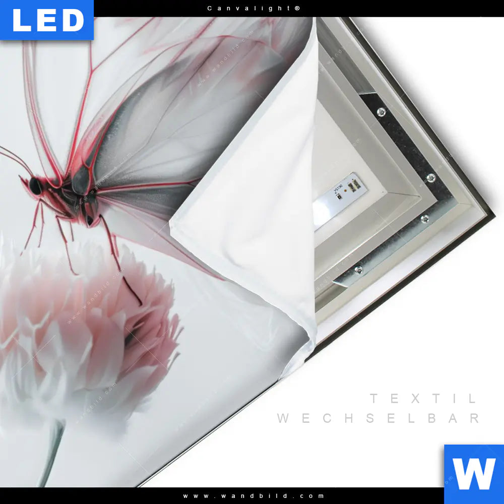 LED-Textilrahmen-Bild mit austauschbarem Tierwelt, Blumen - Botanik Textil-Druck (Wechselbild)