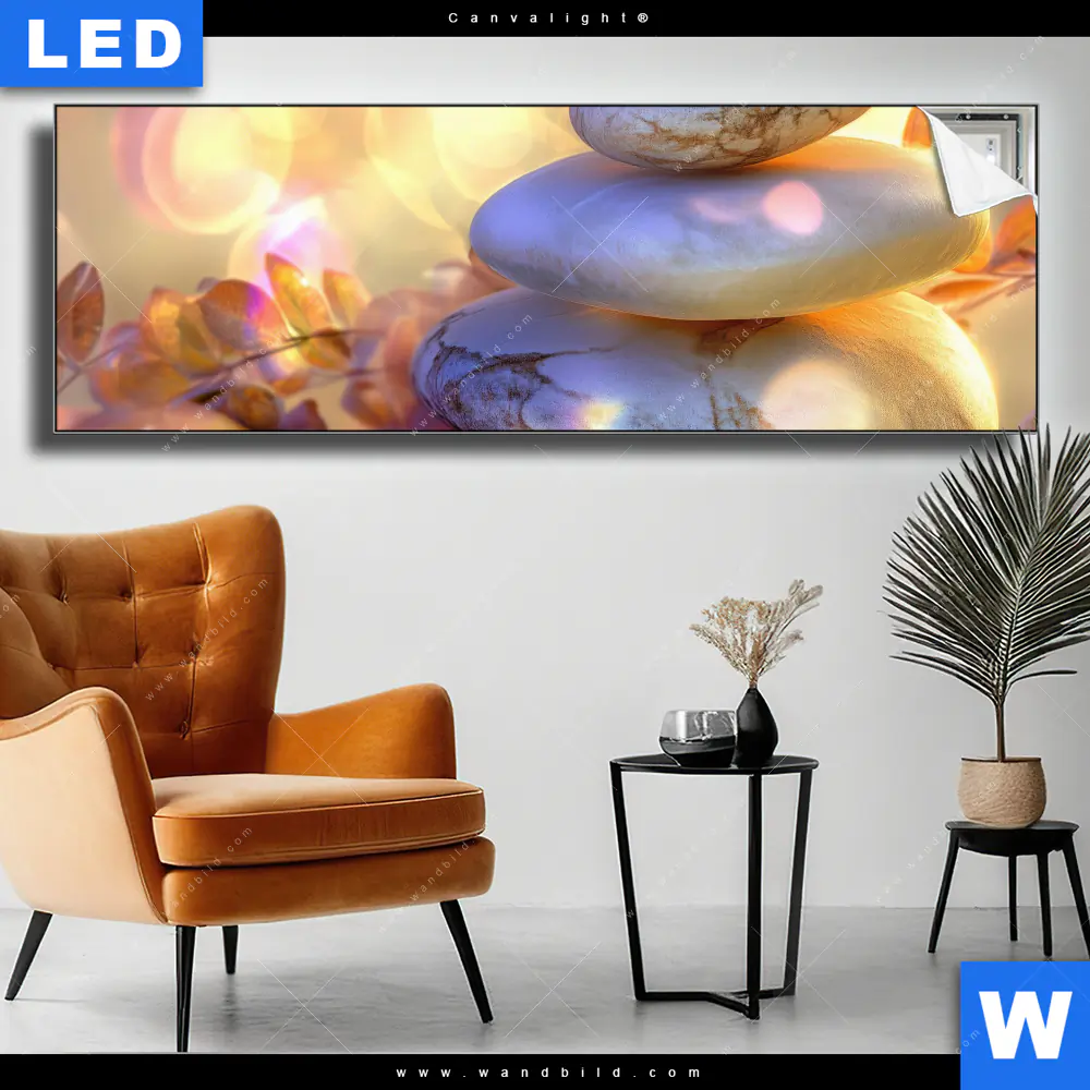 Canvalight® TEX Leuchtbild | Zen-Steine im Licht | Panorama