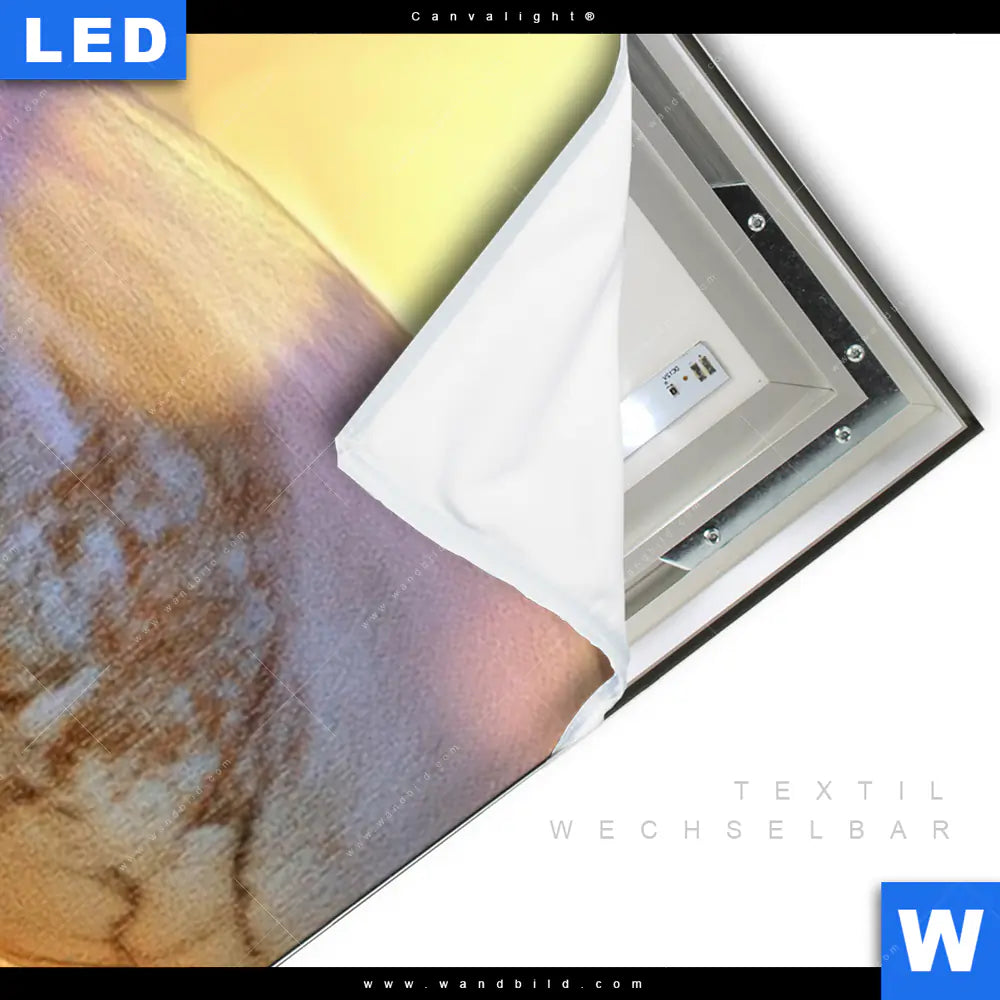 LED-Textilrahmen-Bild mit austauschbarem Buddha - Feng Shui, Blumen - Botanik Textil-Druck (Wechselbild)