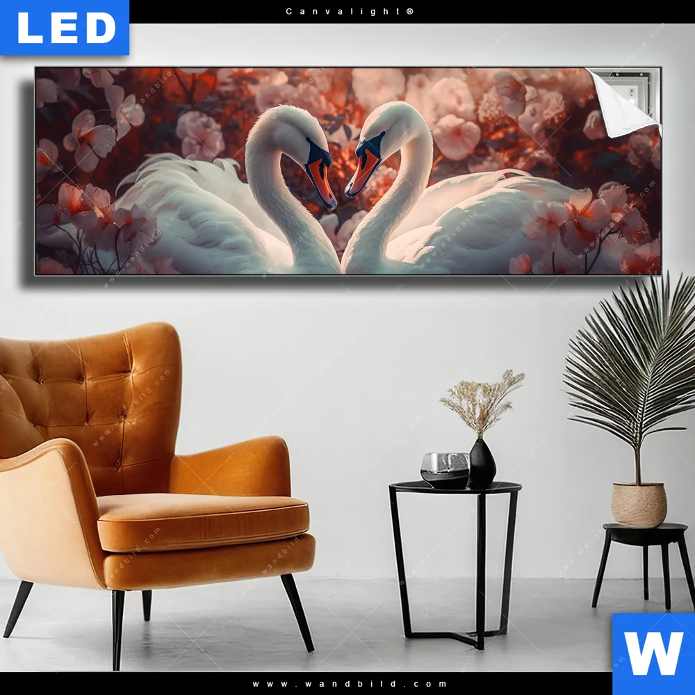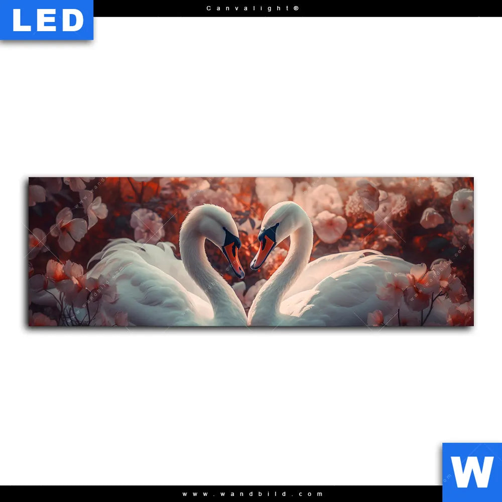 Canvalight® Leuchtbild | Zwei Schwäne im Wasser | Panorama