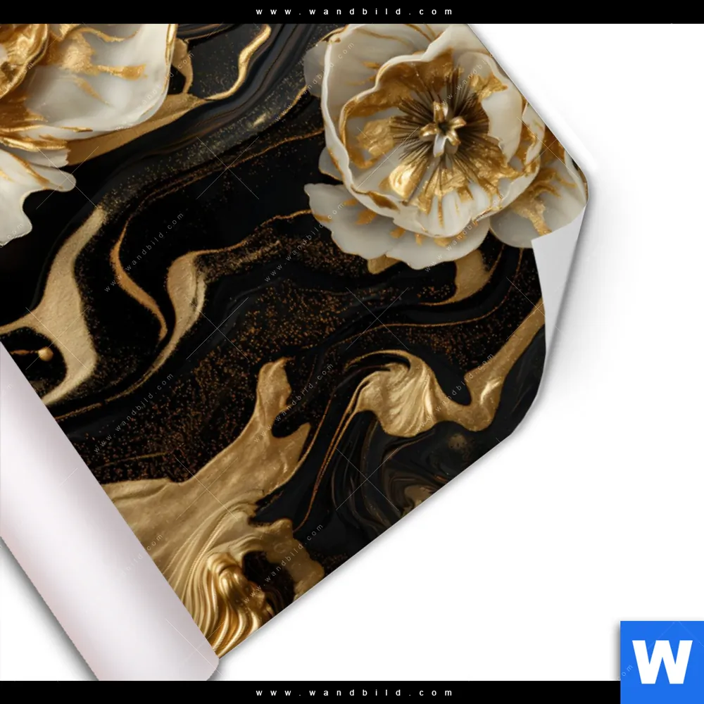 Poster | Blüten Gold Weiß Schwarz | Querformat