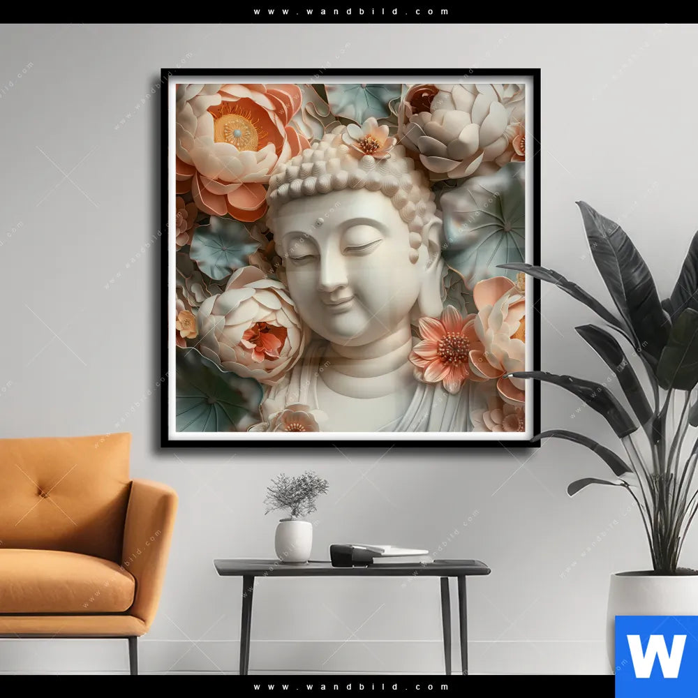 Poster | Buddha-Statue mit Blüten | Quadrat