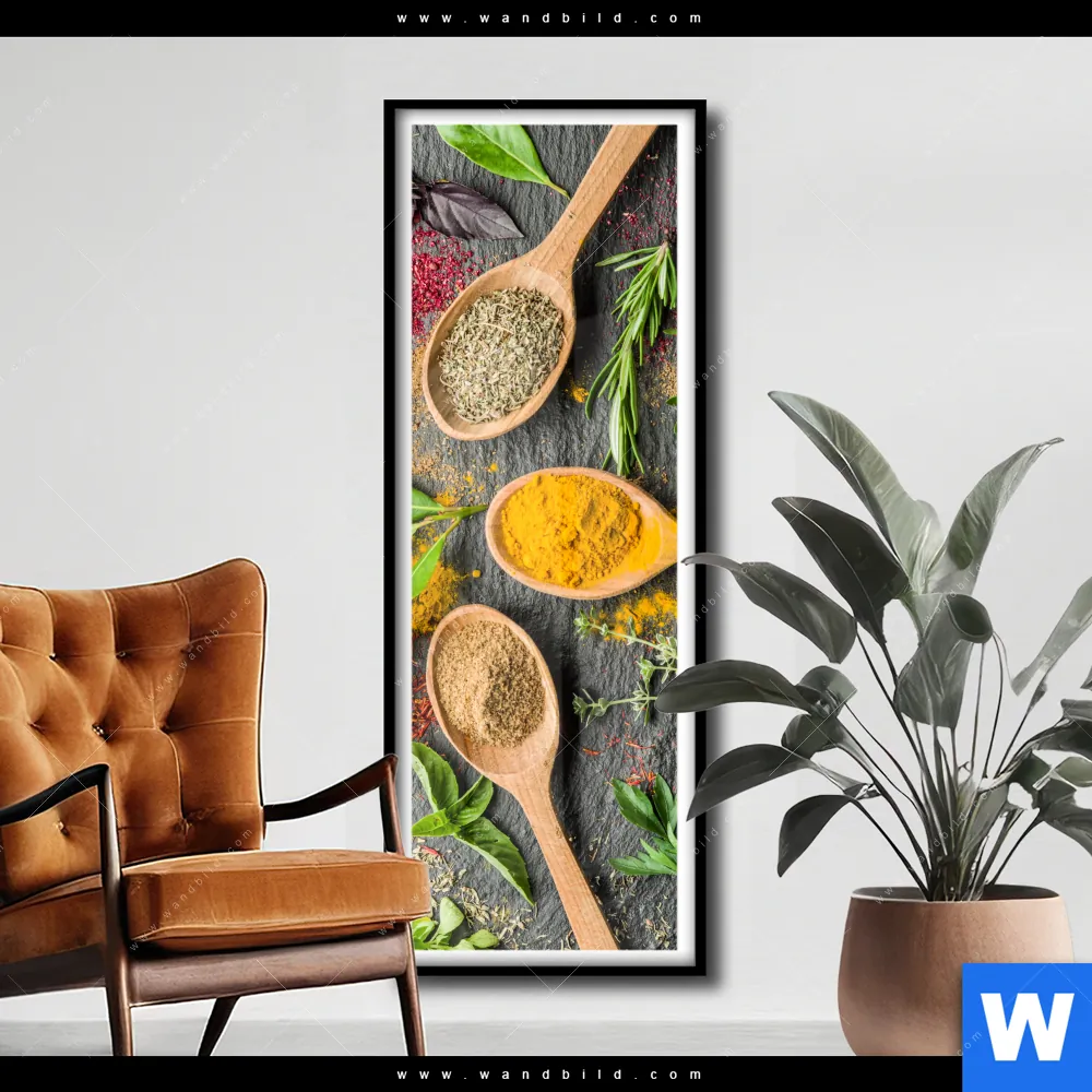 Poster | Bunte Gewürze in Holzlöffeln | Schmal