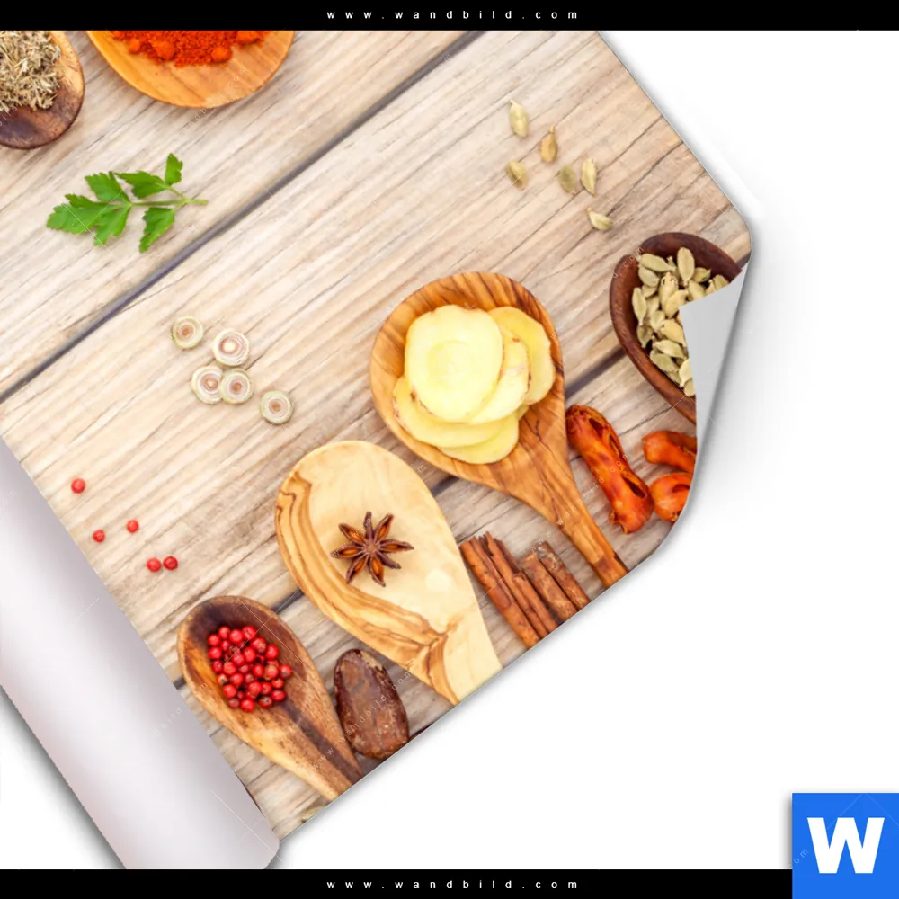 Poster | Gewürze auf hölzernen Löffeln | Hochformat