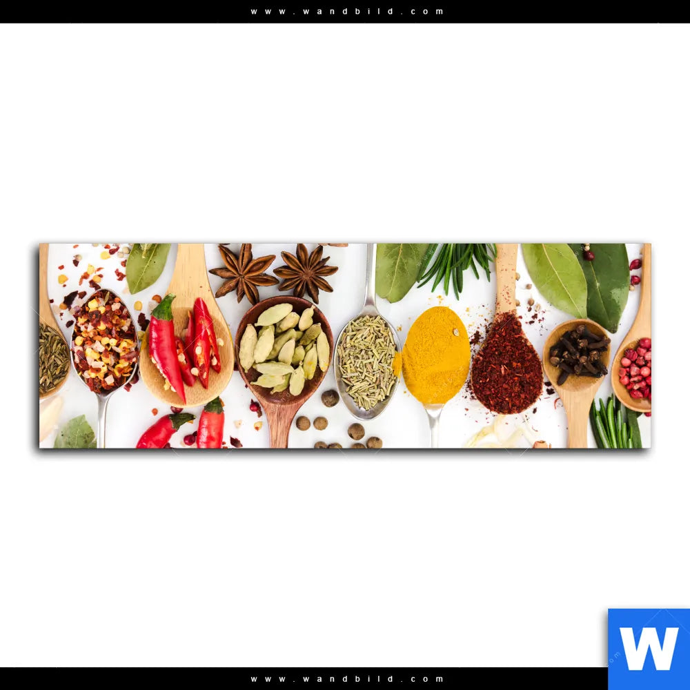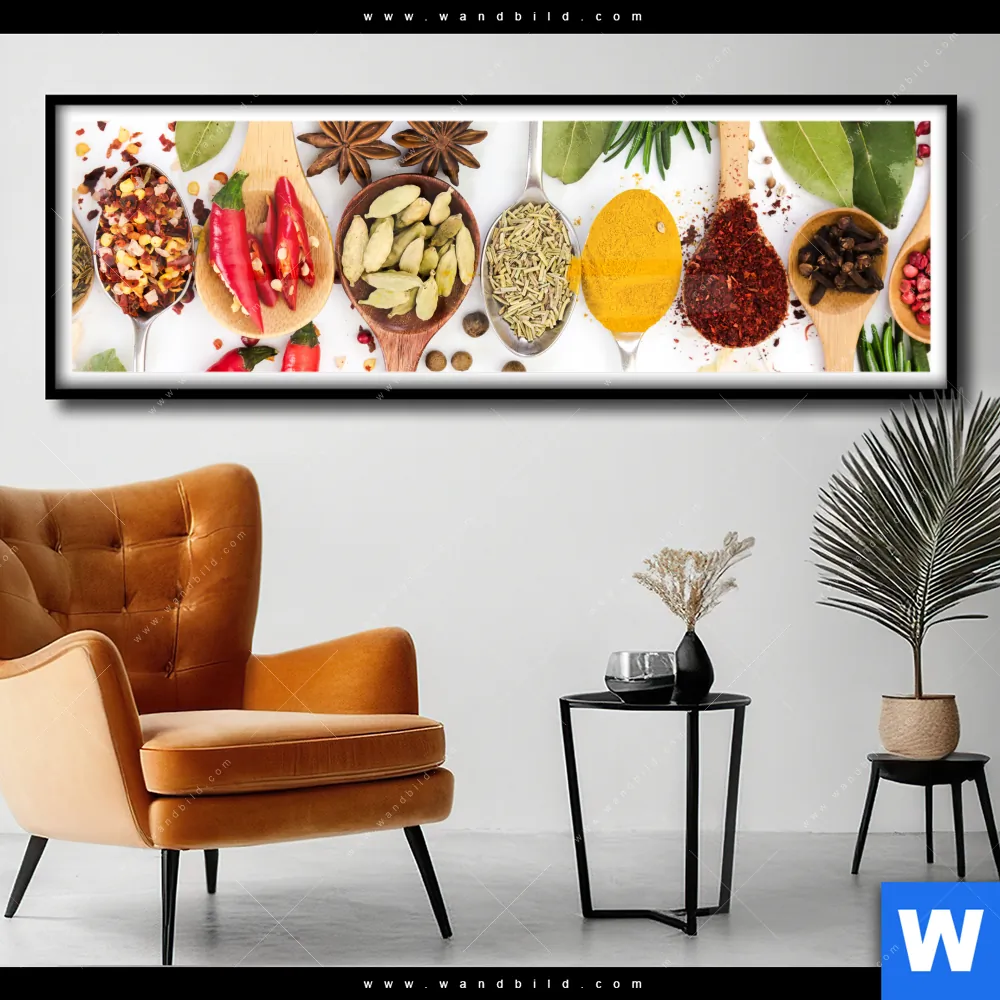 Poster | Gewürze auf Löffeln - weiß | Panorama