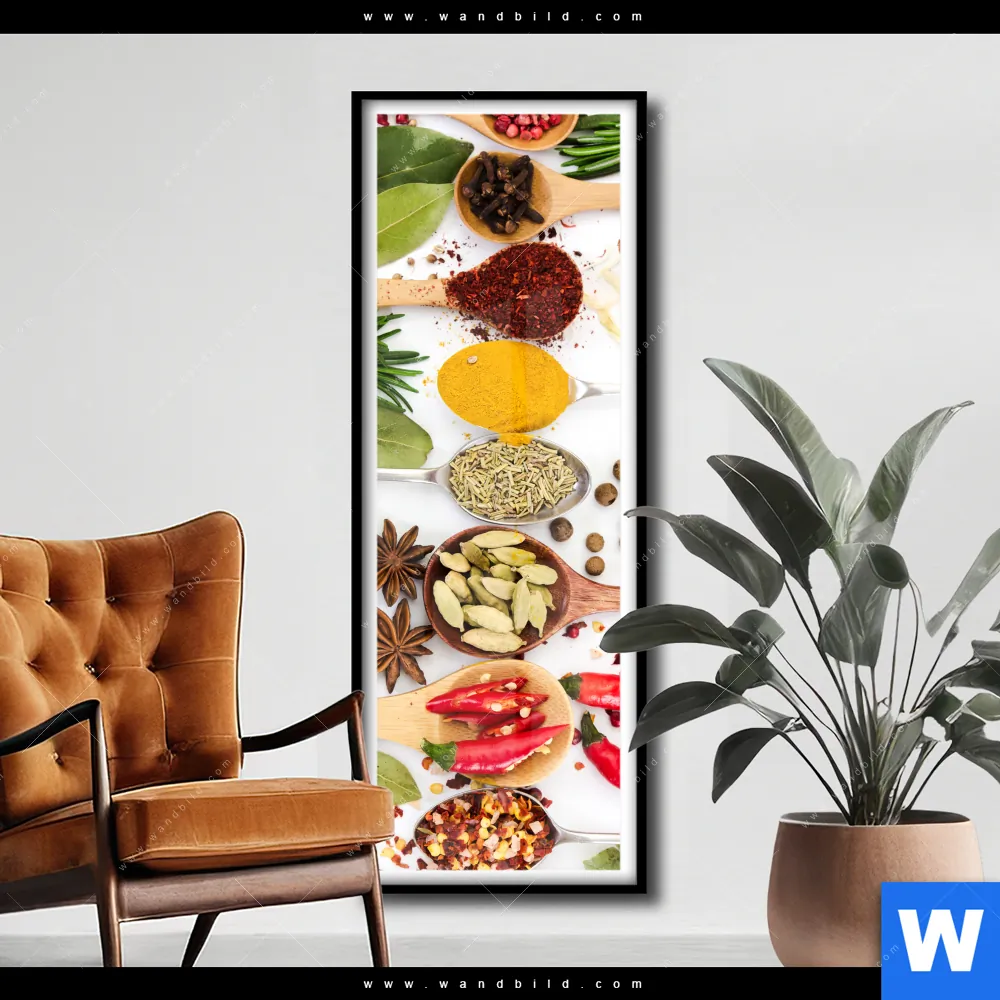 Poster | Gewürze auf Löffeln - weiß | Schmal