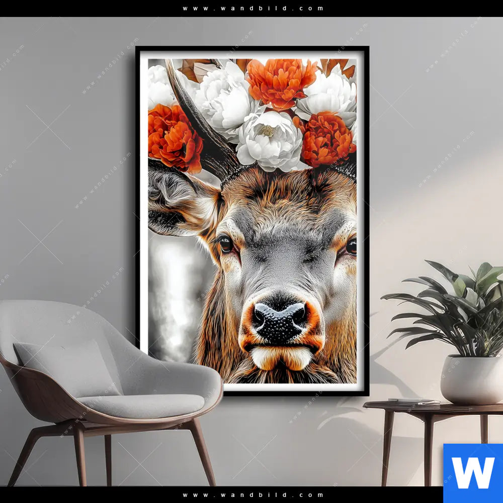 Poster | Hirsch mit Blumenkrone | Hochformat