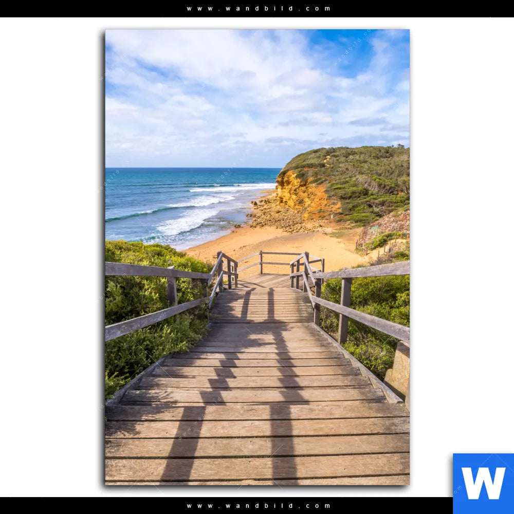 Poster | Holztreppe zum einsamen Strand | Hochformat