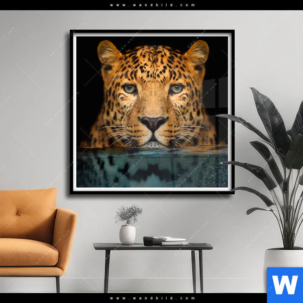 Poster | Leopard im Wasser | Quadrat