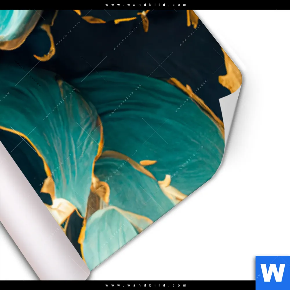 Poster | Marmor Blüten in türkis & gold | Panorama