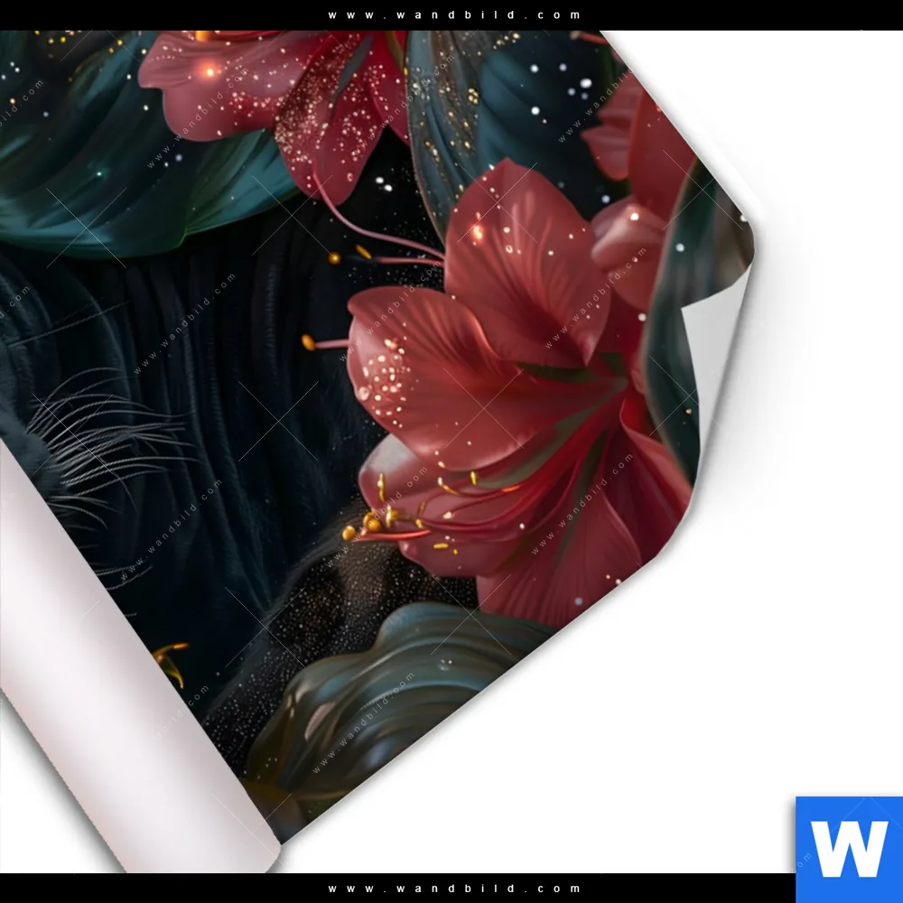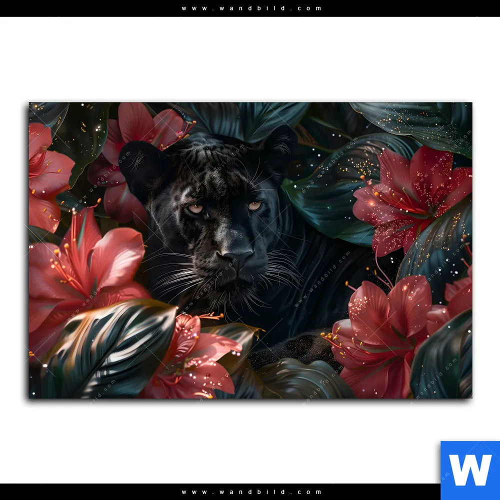 Poster | Panther und rote Blüten | Querformat