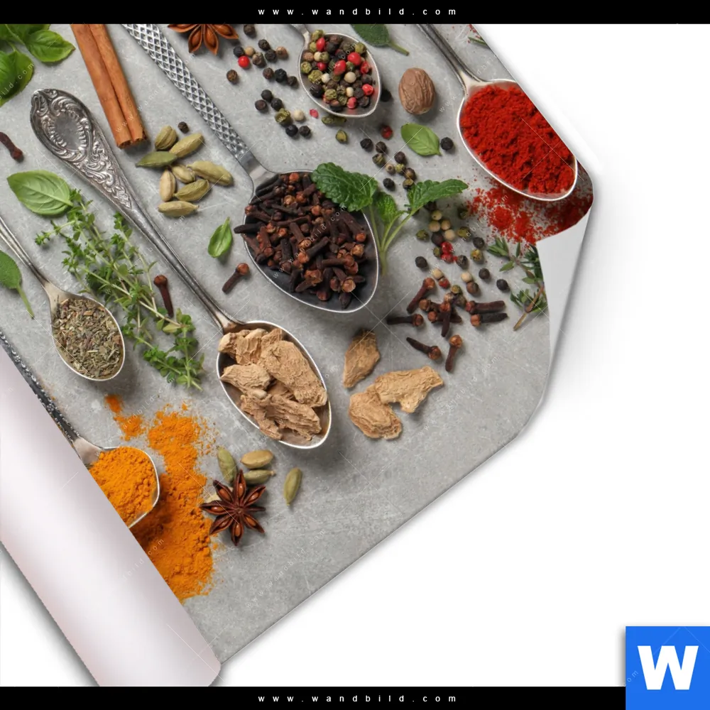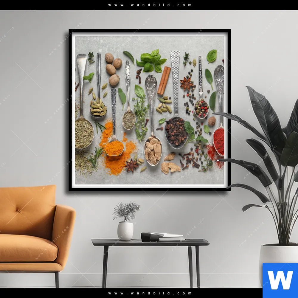 Poster | Silberlöffel mit Gewürzen | Quadrat