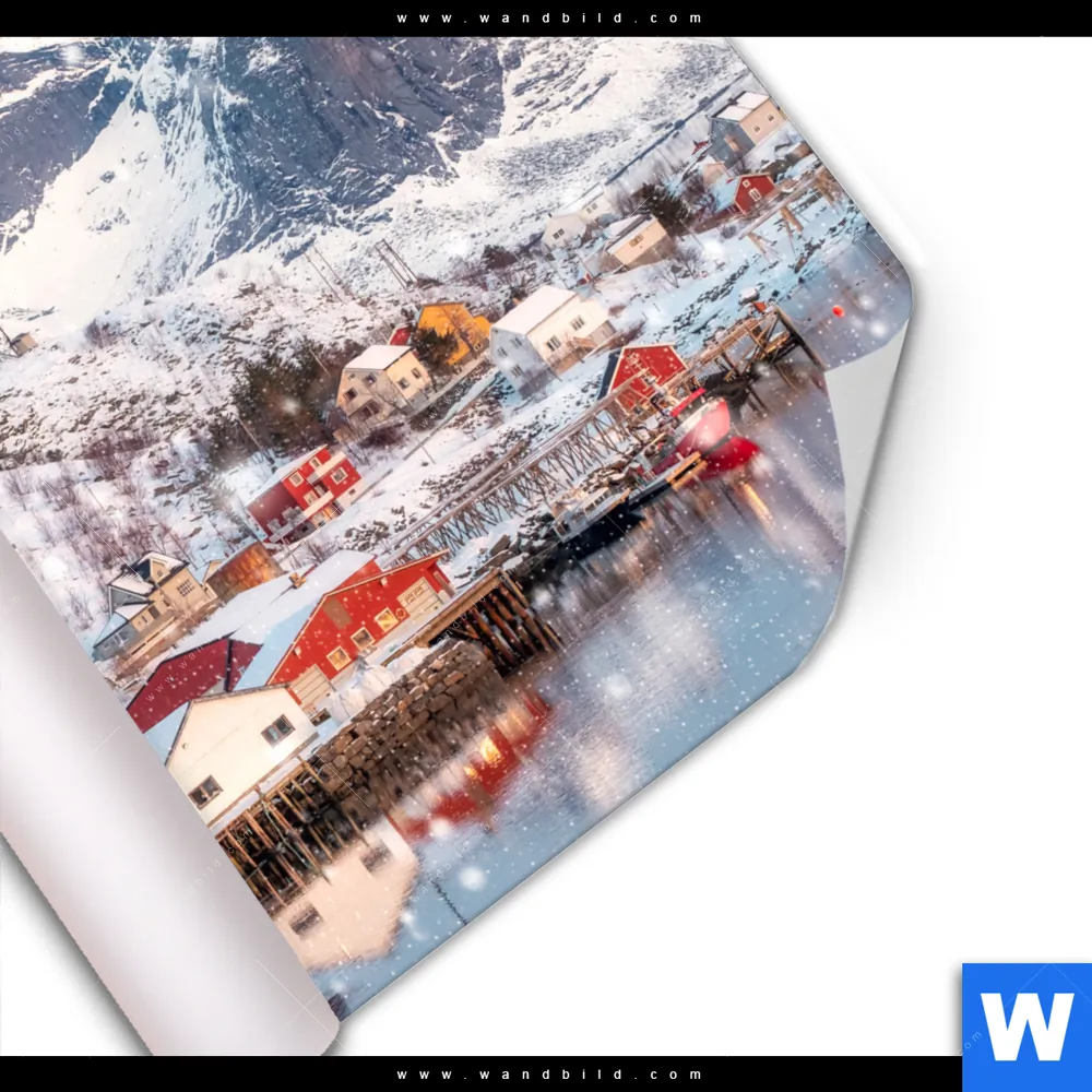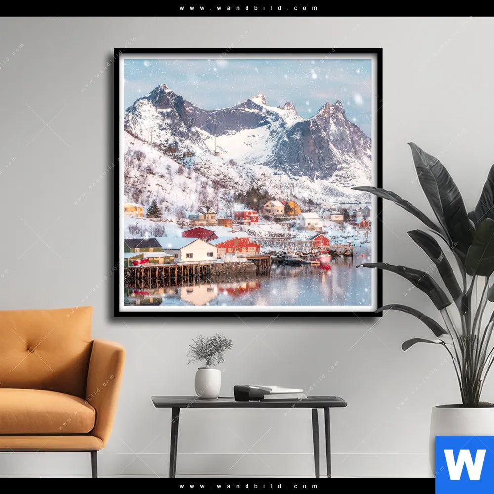 Poster | Skandinavisches Dorf im Schnee | Quadrat