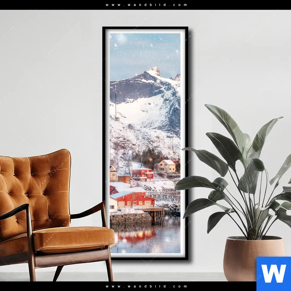 Poster | Skandinavisches Dorf im Schnee | Schmal