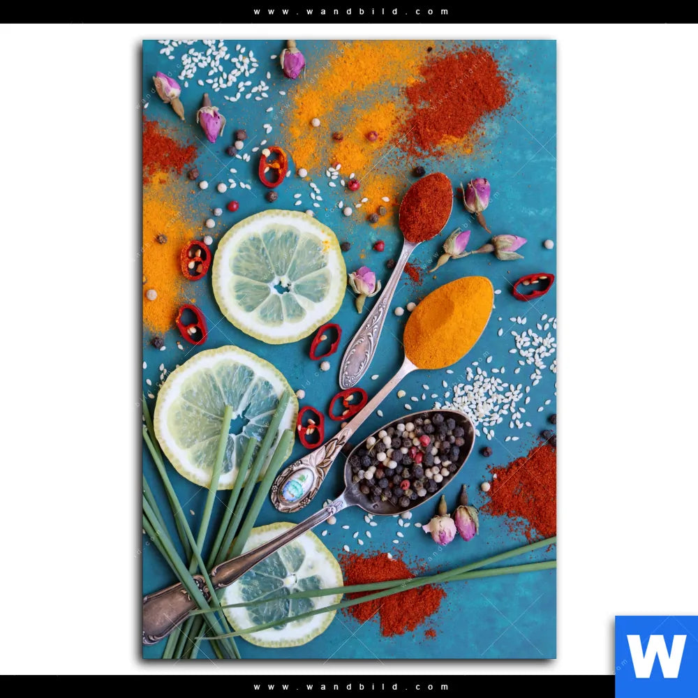 Poster | Vintage Silberlöffel mit Gewürzen | Hochformat