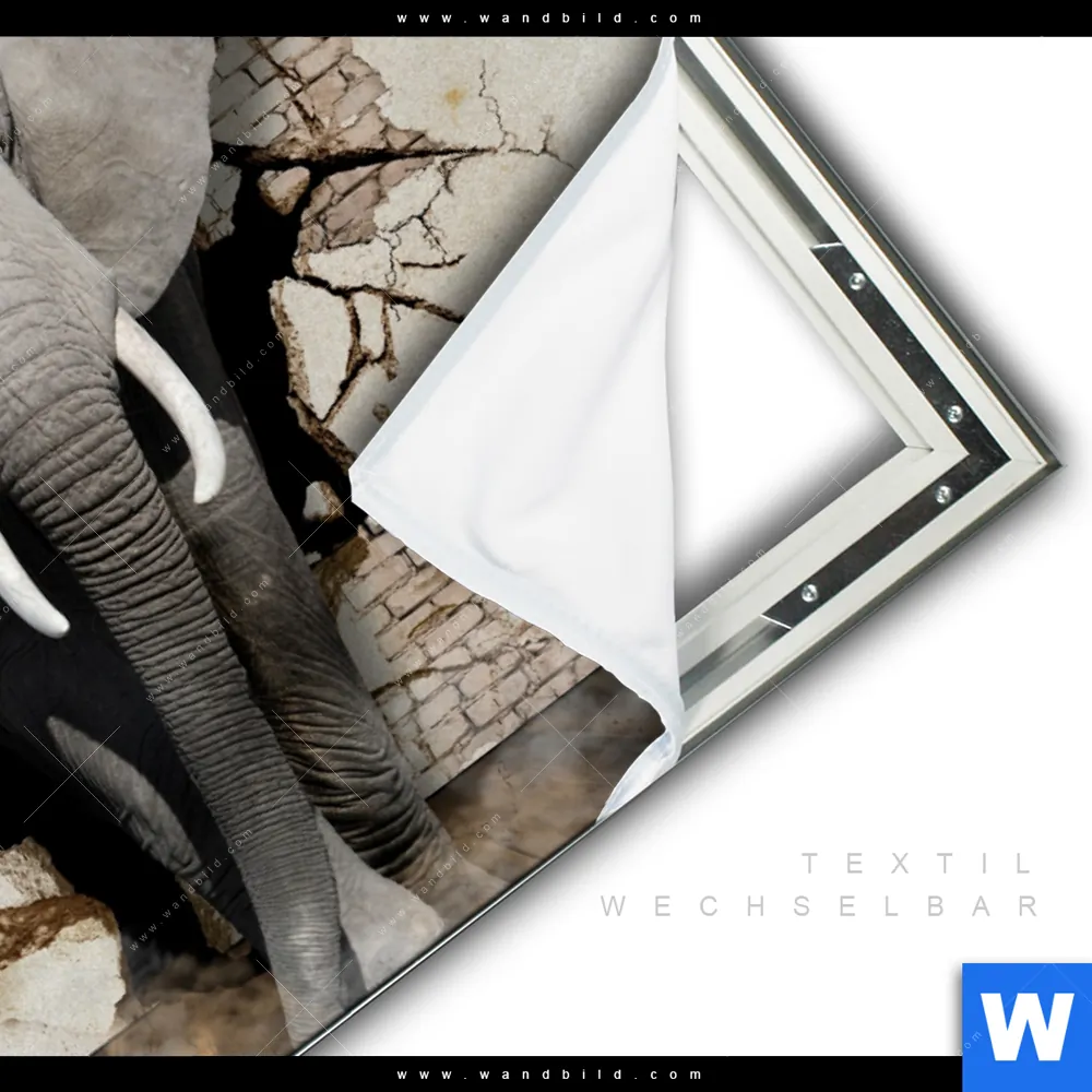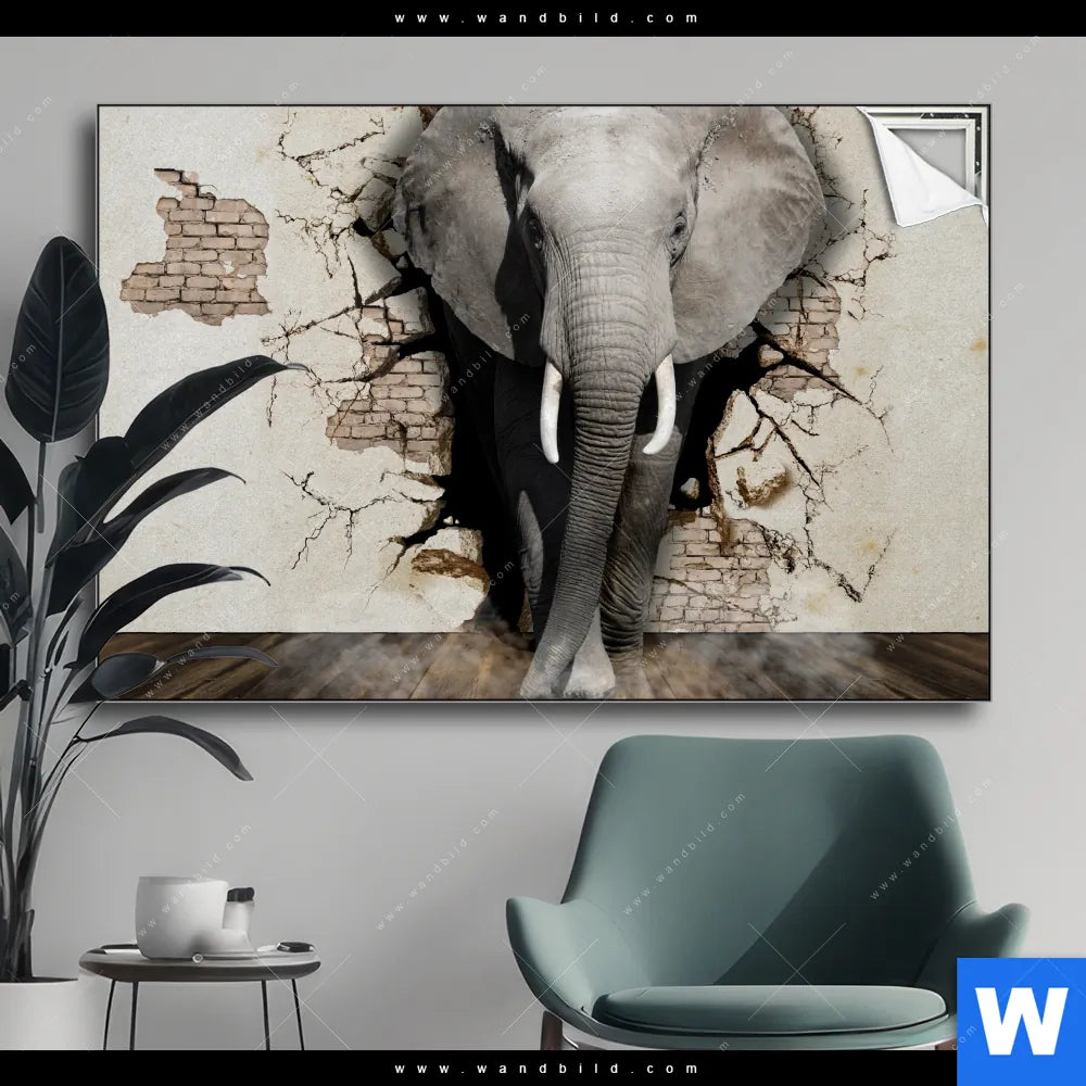 Spannbild | Elefant bricht durch Mauer | Querformat