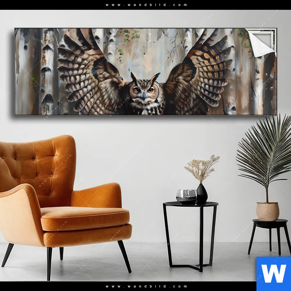 Spannbild | Eule im Birkenwald | Panorama