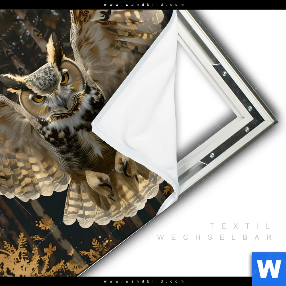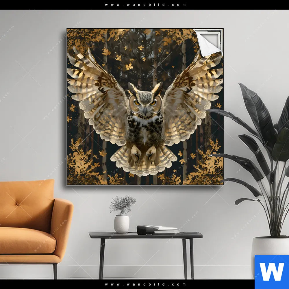 Spannbild | Eule inmitten goldener Blätter | Quadrat