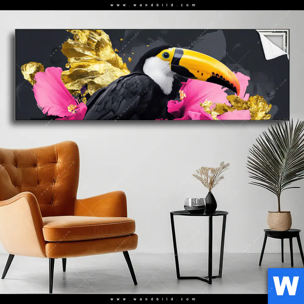 Spannbild | Exotischer Tukan mit Blüten | Panorama