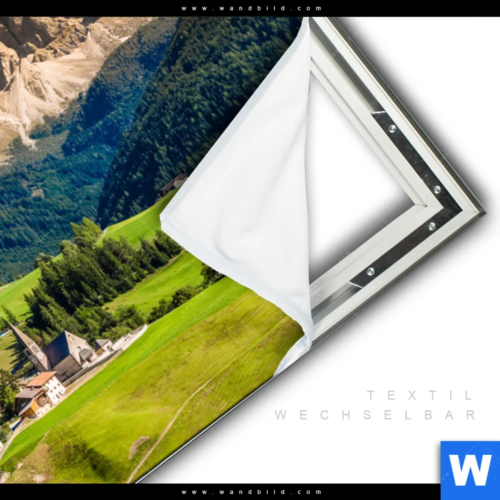 Wechselbild mit Flachkeder-Technik inkl. Aluminium-Textilrahmen