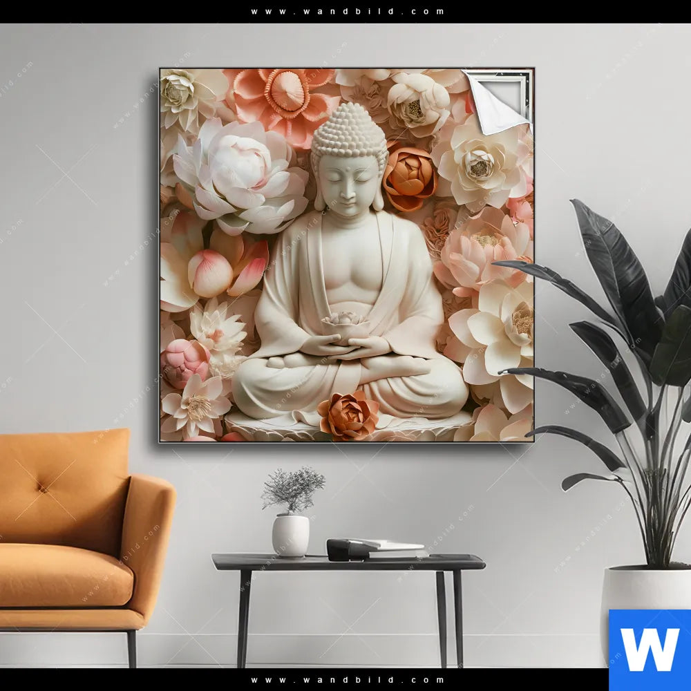 Spannbild | Meditierender Buddha mit Blüten | Quadrat