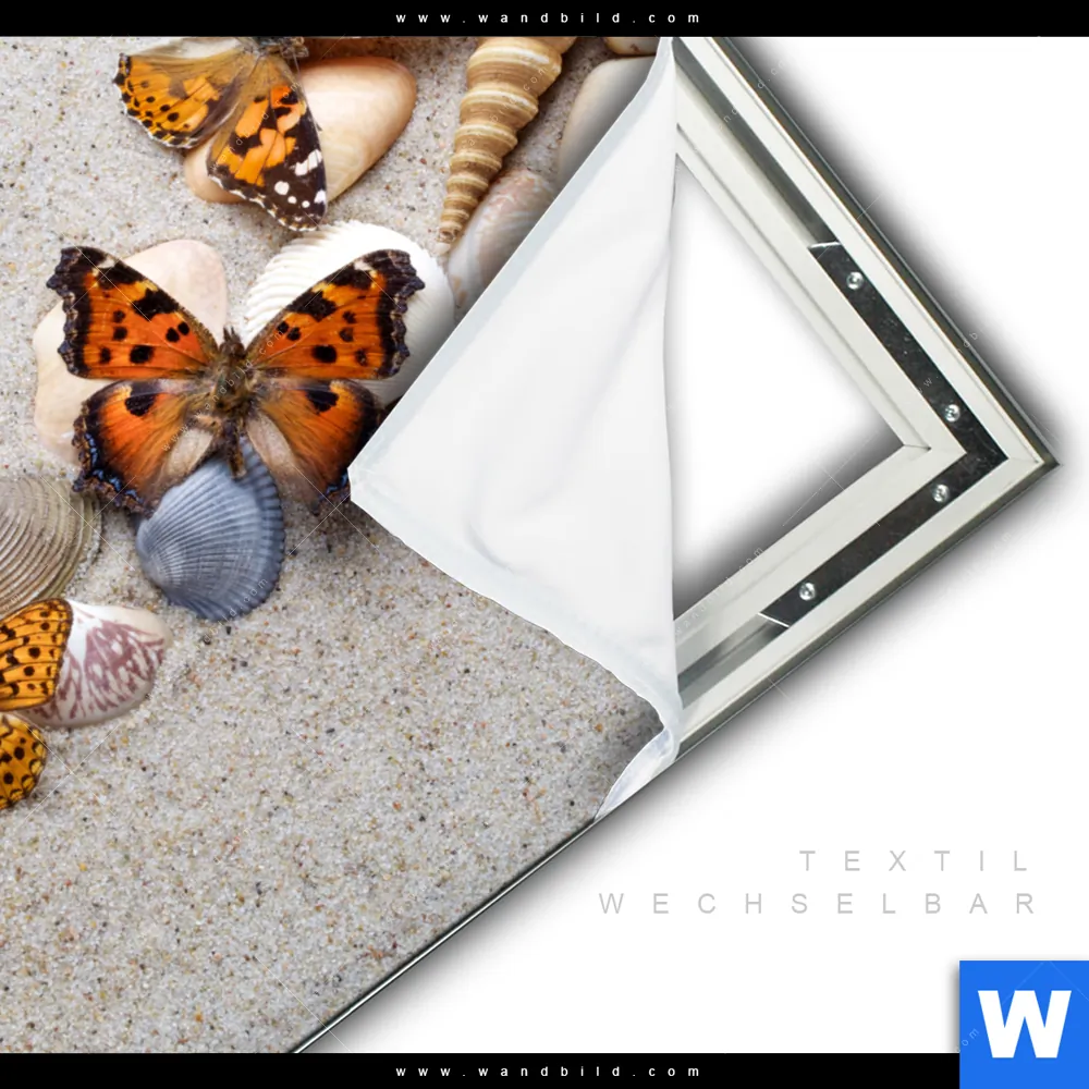 Spannbild | Schmetterlinge & Muscheln im Sand | Quadrat