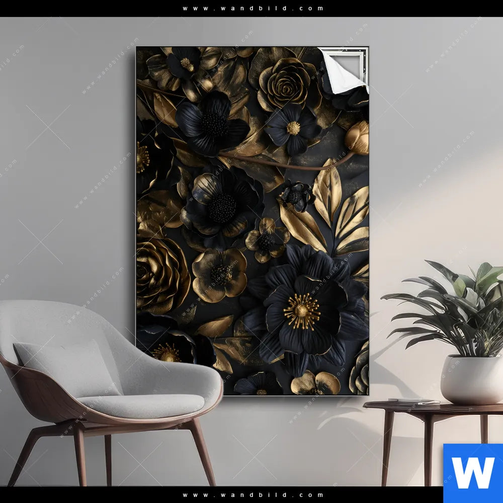 Spannbild | Schwarze und goldene Blüten | Hochformat