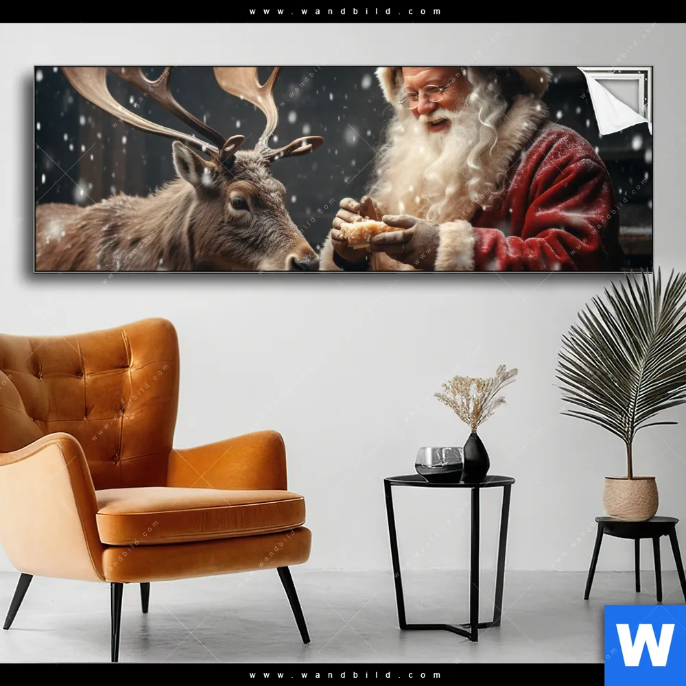 Spannbild | Weihnachtsmann füttert Rentier | Panorama