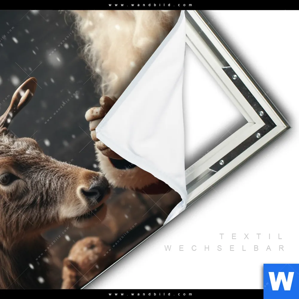 Spannbild | Weihnachtsmann füttert Rentier | Quadrat