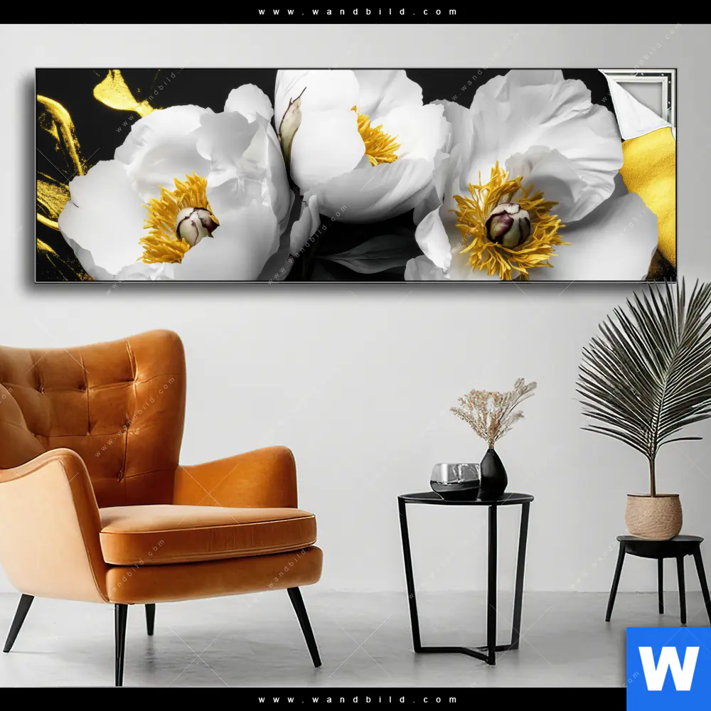 Spannbild | Weiße Blumen mit Gold | Panorama