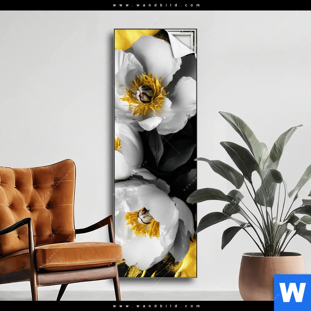 Spannbild | Weiße Blumen mit Gold | Schmal