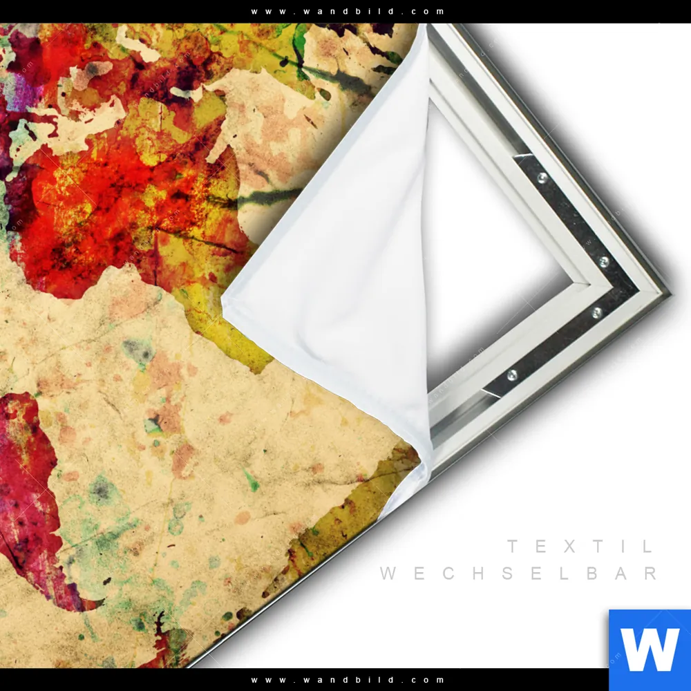 Spannbild | Weltkarte Retro Bunt | Quadrat