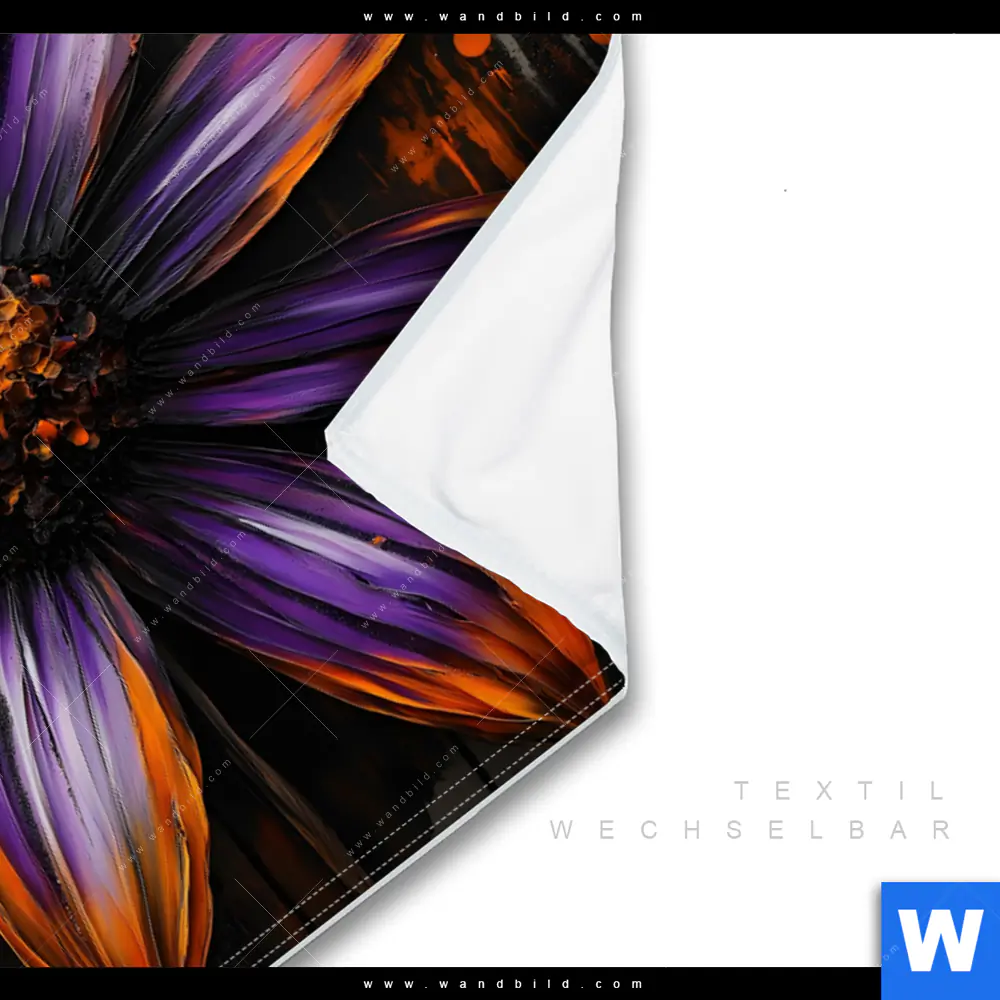 Wechselmotiv Textil | Abstrakte Blume in Orange & Lila | Querformat