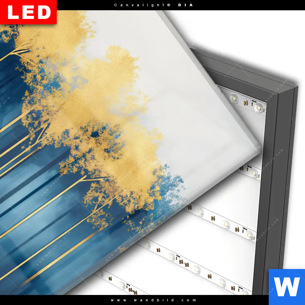 Wechselmotiv Acrylglas Canvalight® DIA | Abstrakter Wald - Blau & Gold | Quadrat