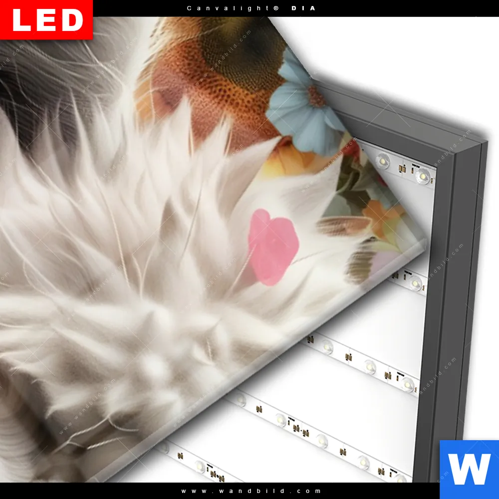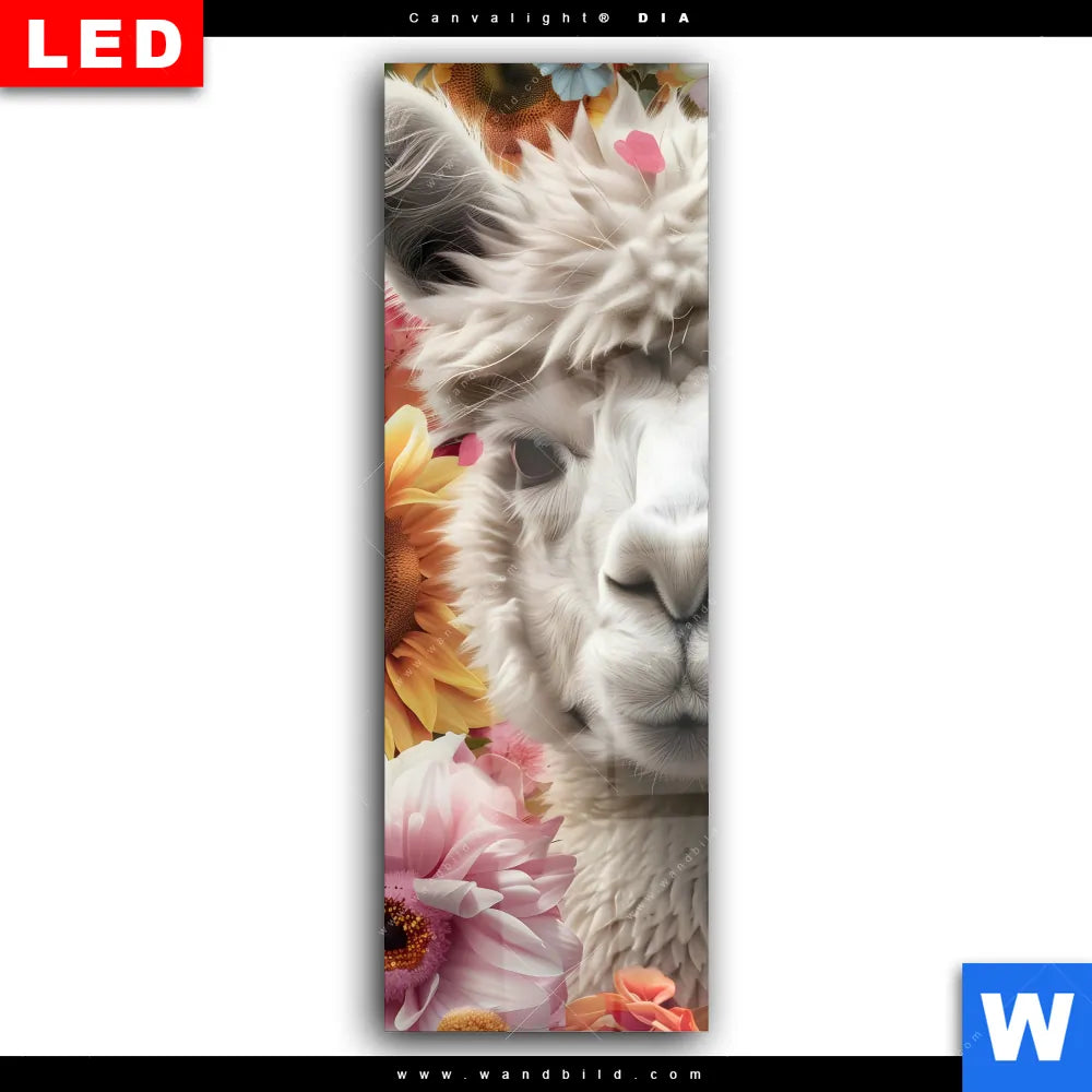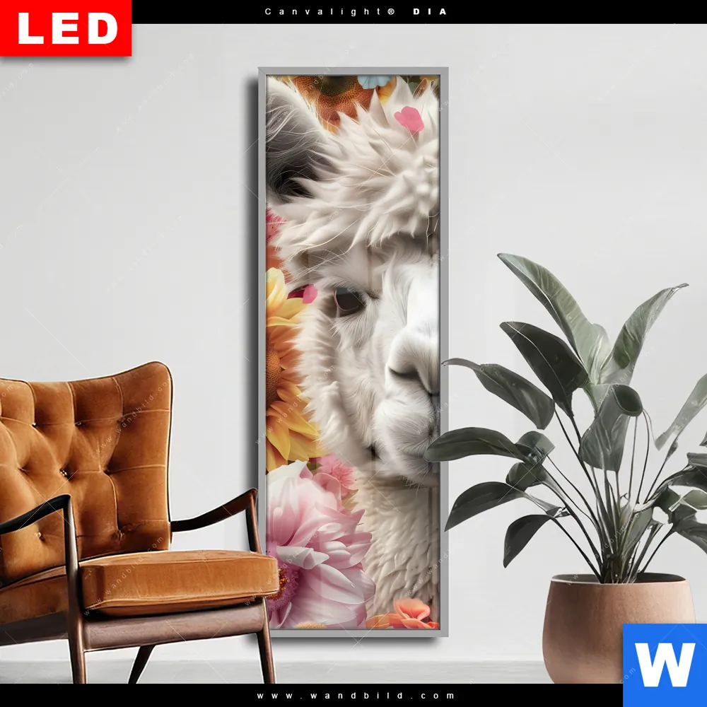 Wechselmotiv Acrylglas Canvalight® DIA | Alpaka mit Blumen | Schmal