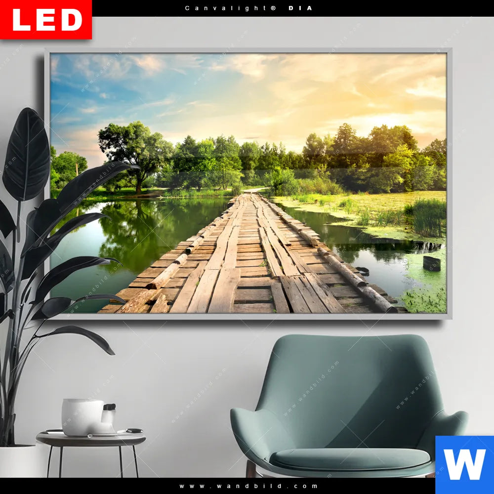 Wechselmotiv Acrylglas Canvalight® DIA | Alte Brücke am Fluss | Querformat