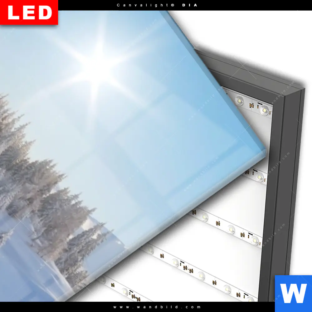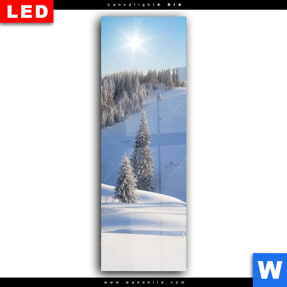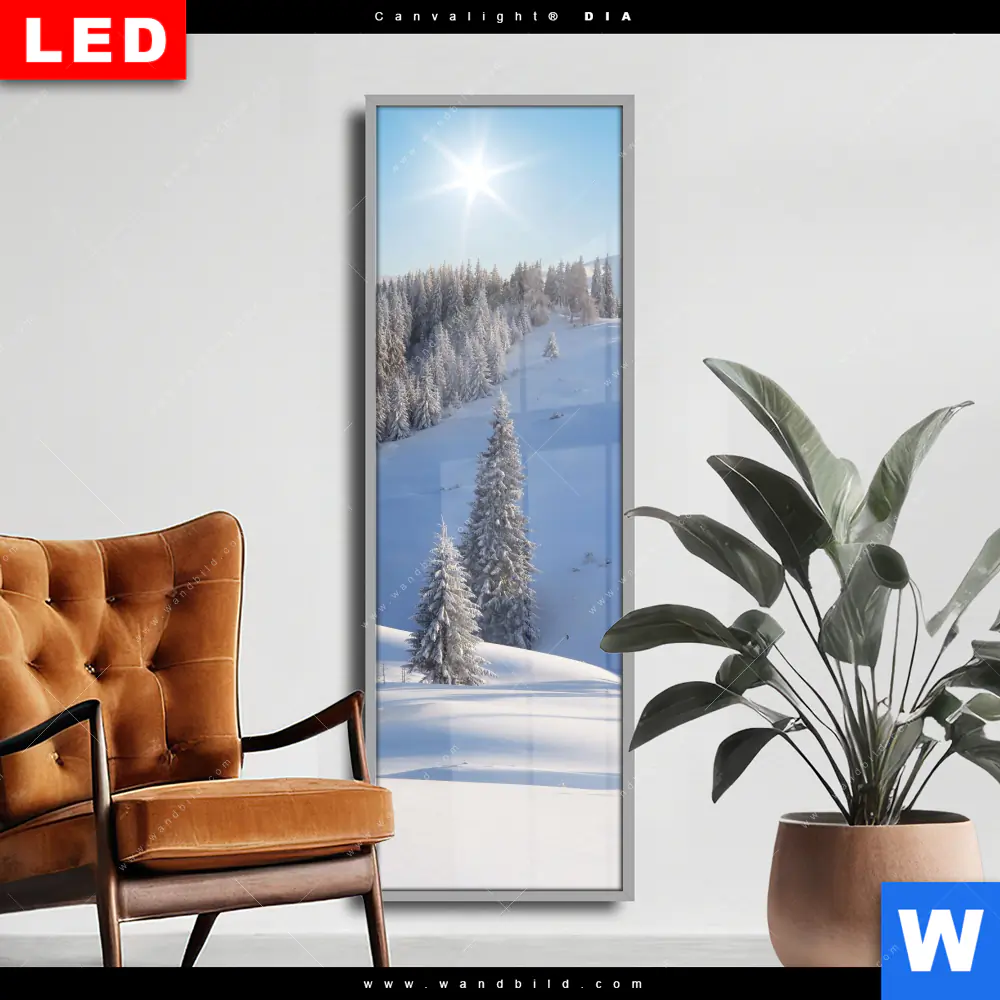Wechselmotiv Acrylglas Canvalight® DIA | Berge und Wälder in Schnee | Schmal