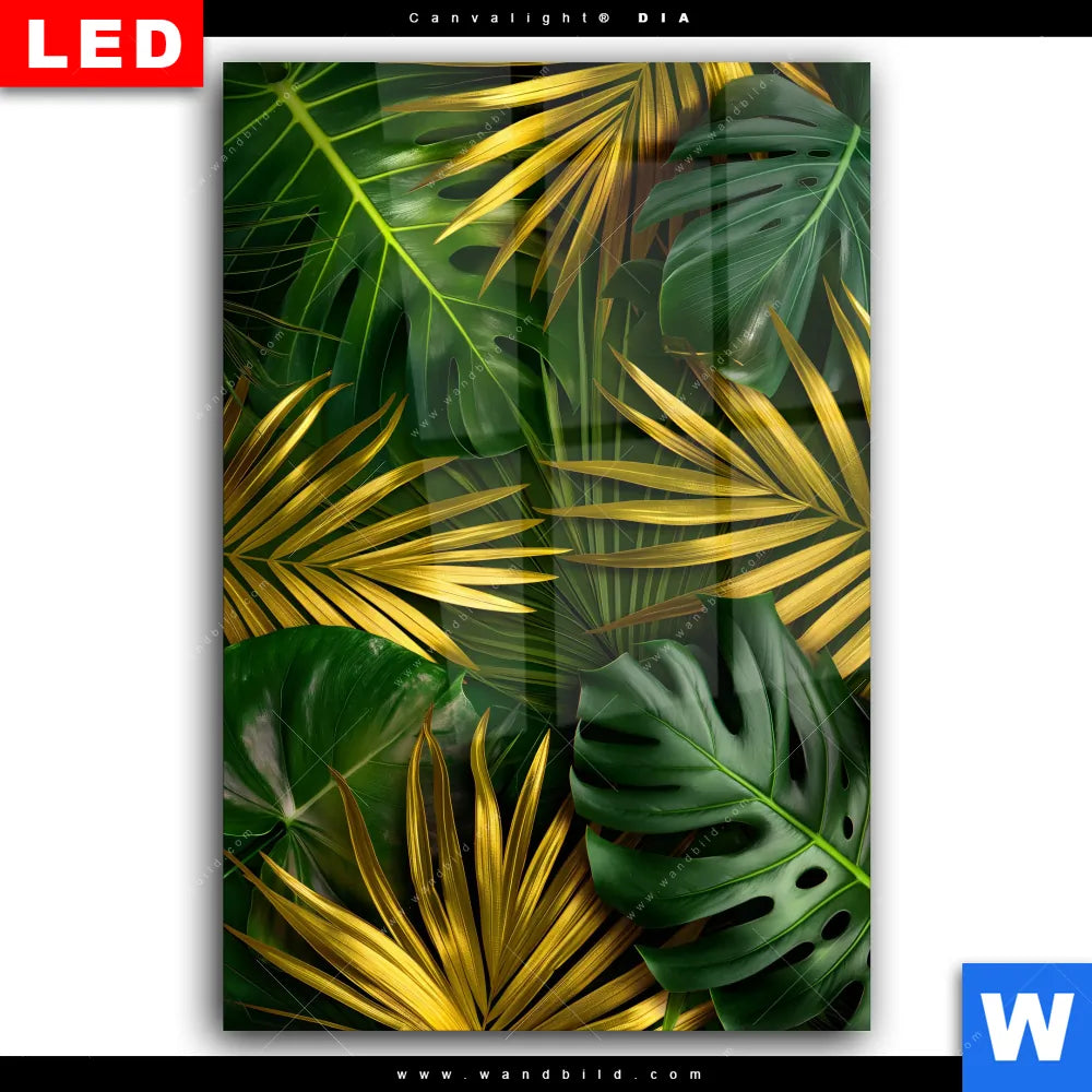 Wechselmotiv Acrylglas Canvalight® DIA | Blätter Gold Grün | Hochformat