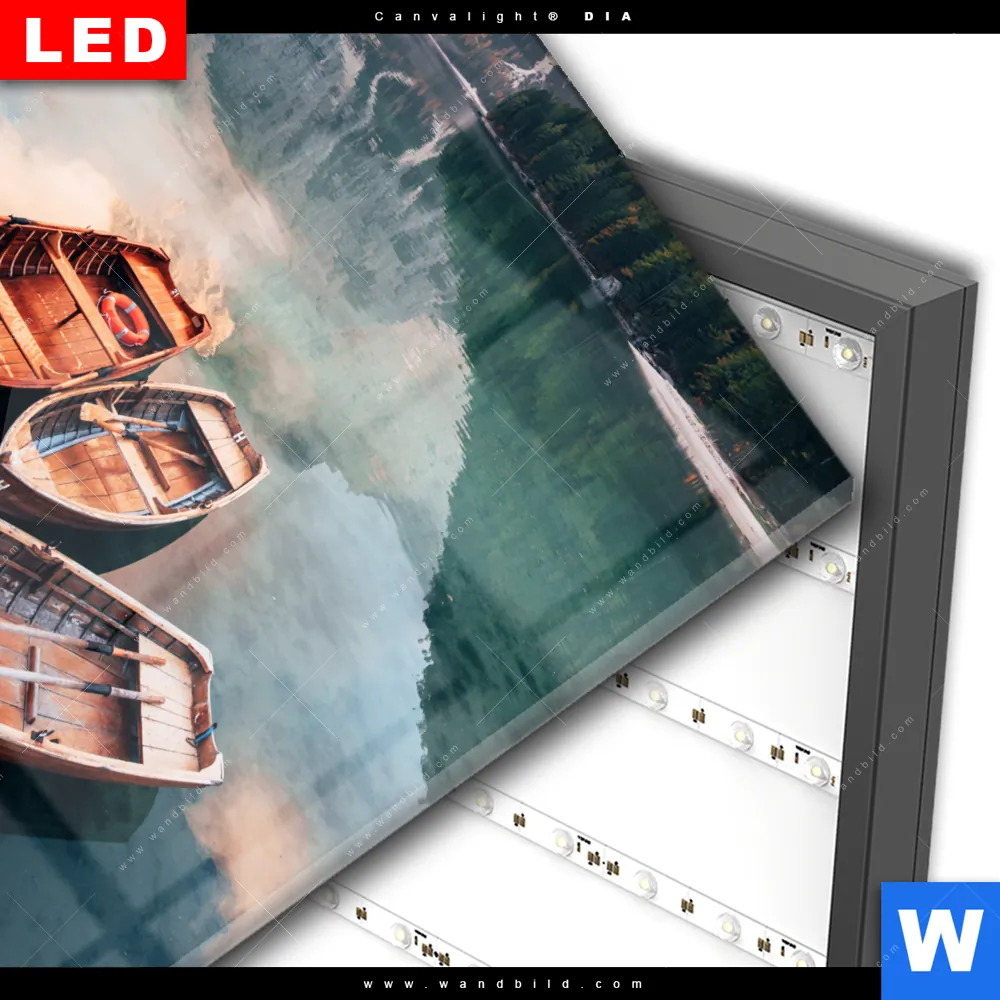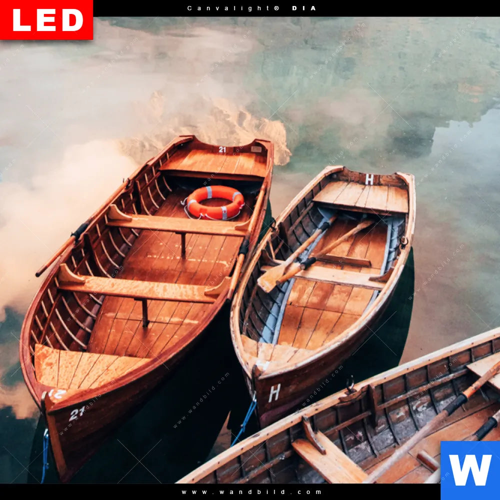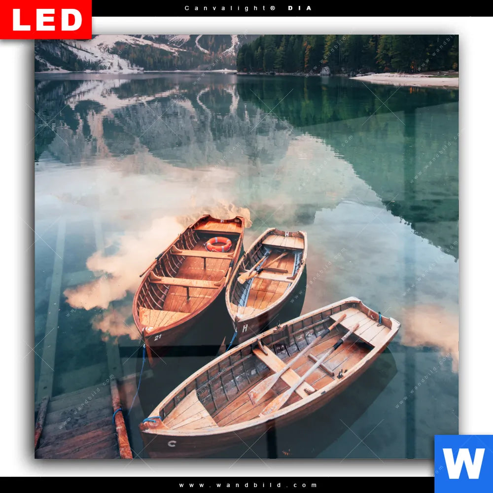 Wechselmotiv Acrylglas Canvalight® DIA | Boote im Bergsee | Quadrat