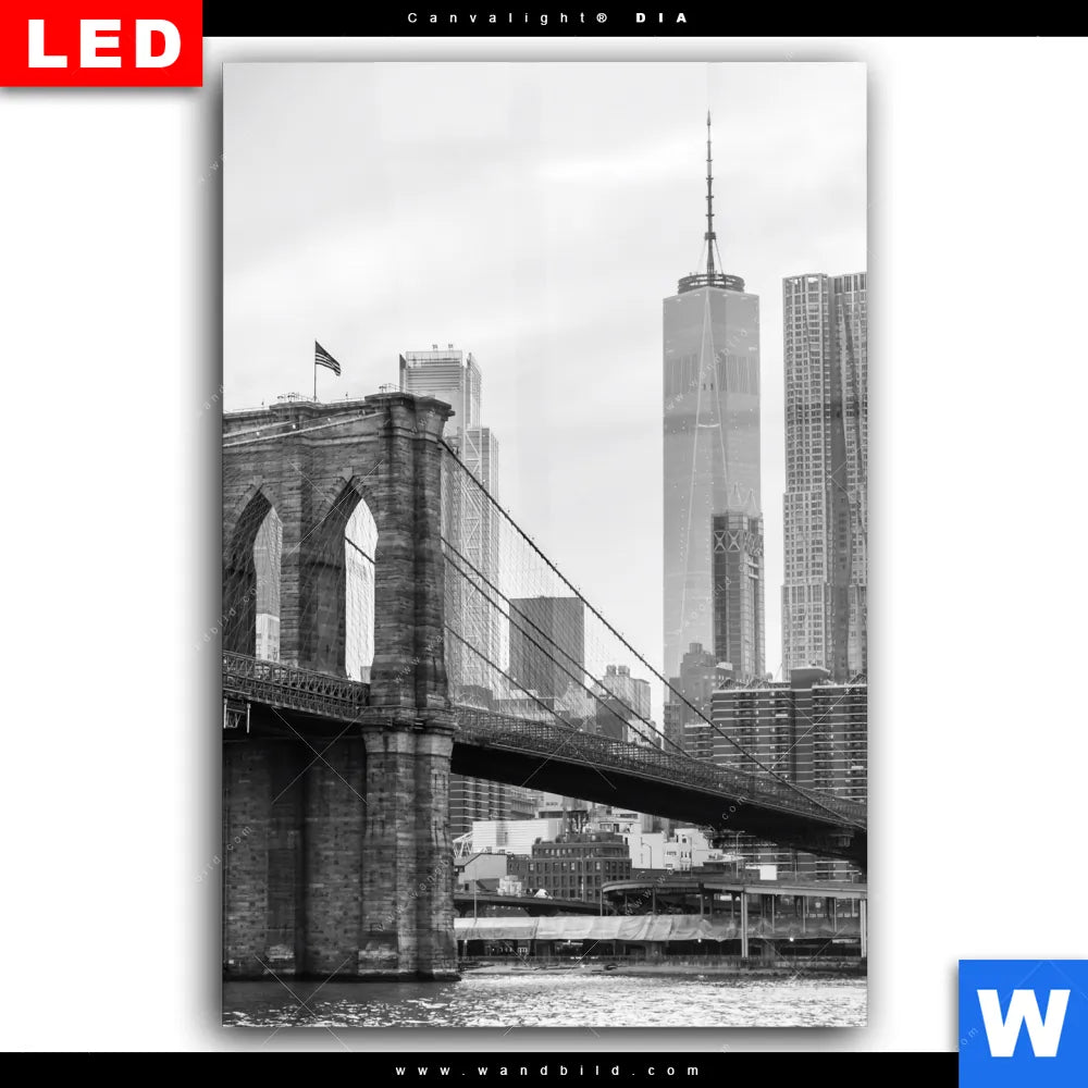 Wechselmotiv Acrylglas Canvalight® DIA | Brooklyn Bridge Schwarzweiß | Hochformat