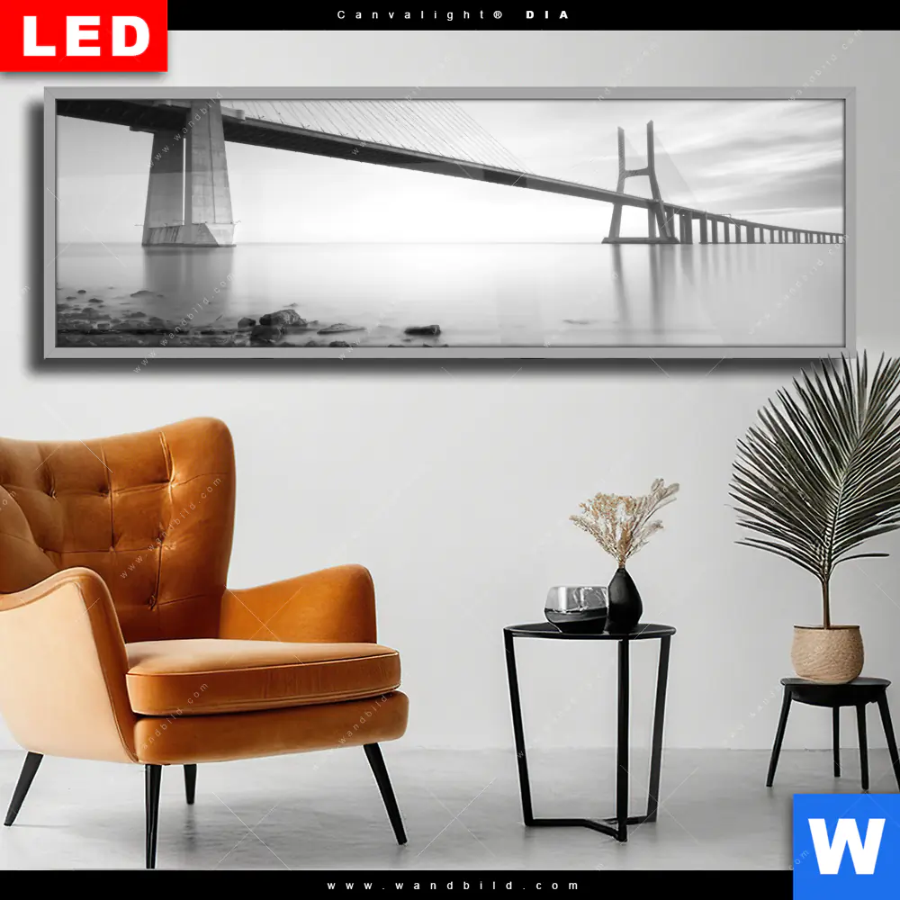 Wechselmotiv Acrylglas Canvalight® DIA | Brücke am weiten Meer | Panorama