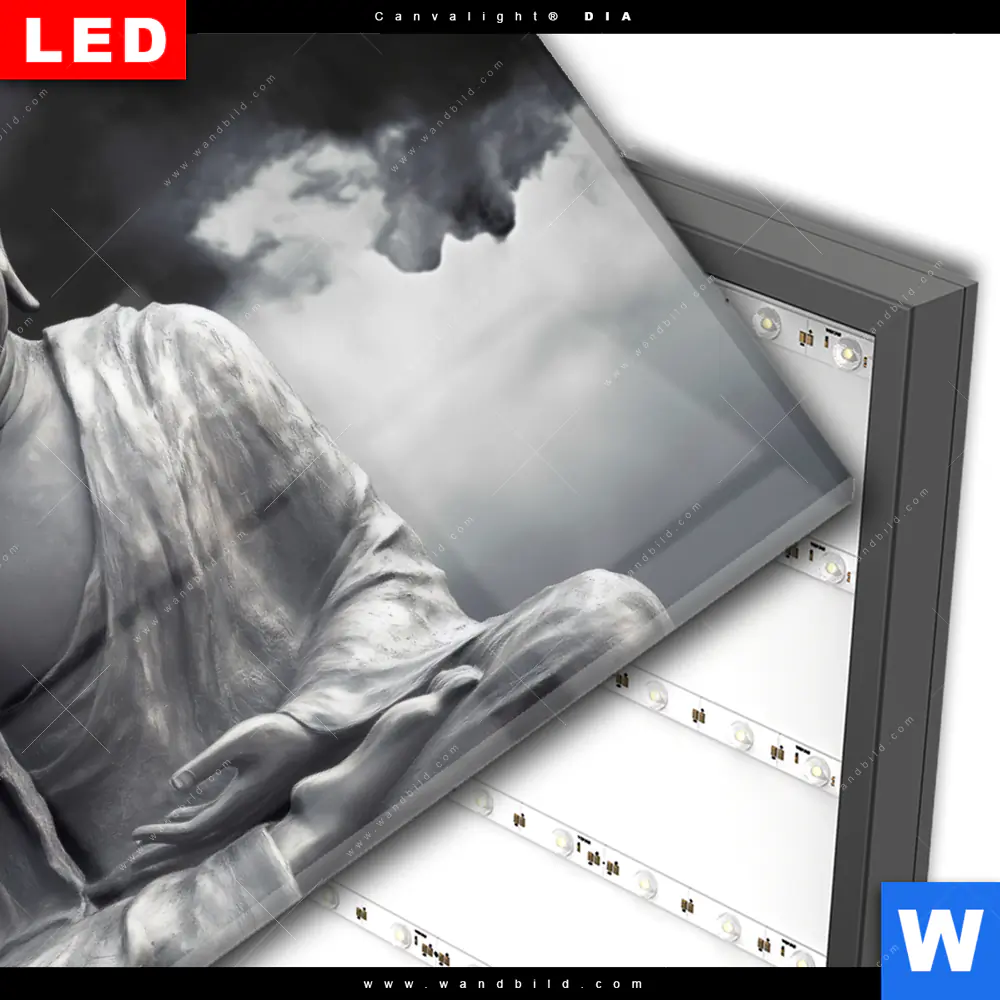 Wechselmotiv Acrylglas Canvalight® DIA | Buddha - Erleuchtung im Dunkeln | Querformat