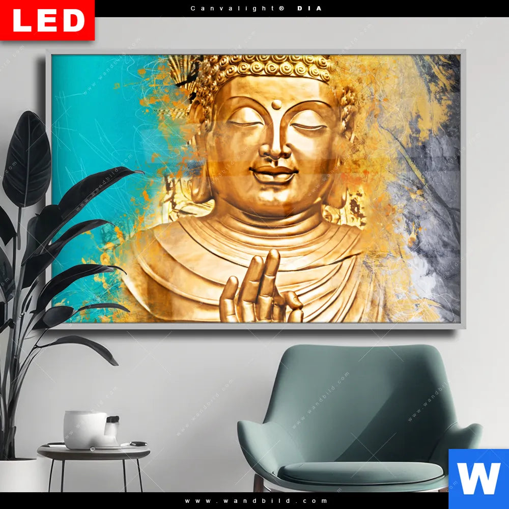 Wechselmotiv Acrylglas Canvalight® DIA | Buddha Gold & Türkis | Querformat