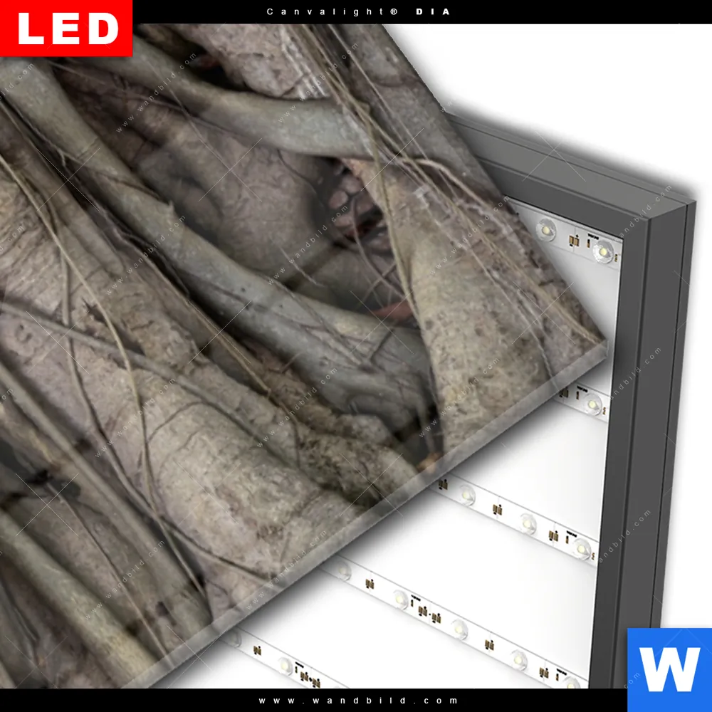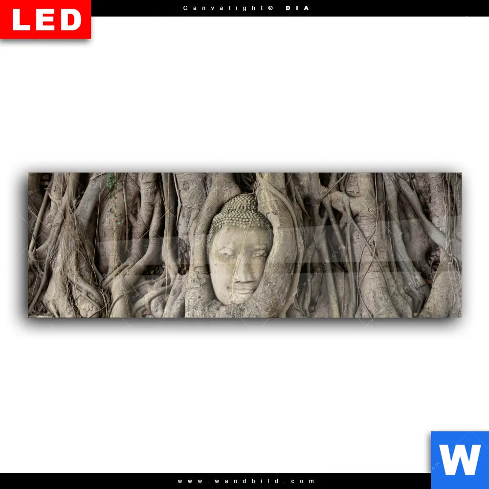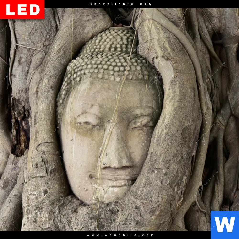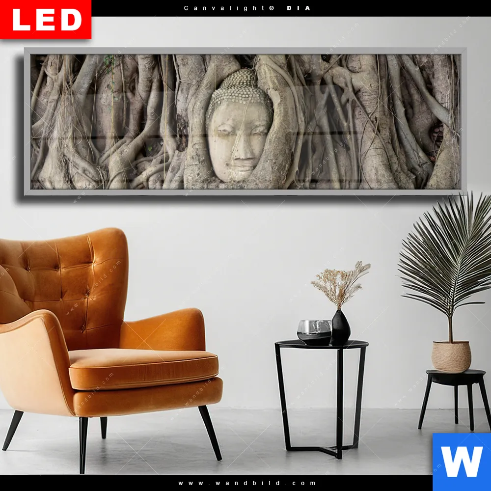 Wechselmotiv Acrylglas Canvalight® DIA | Buddha in Baumwurzeln | Panorama